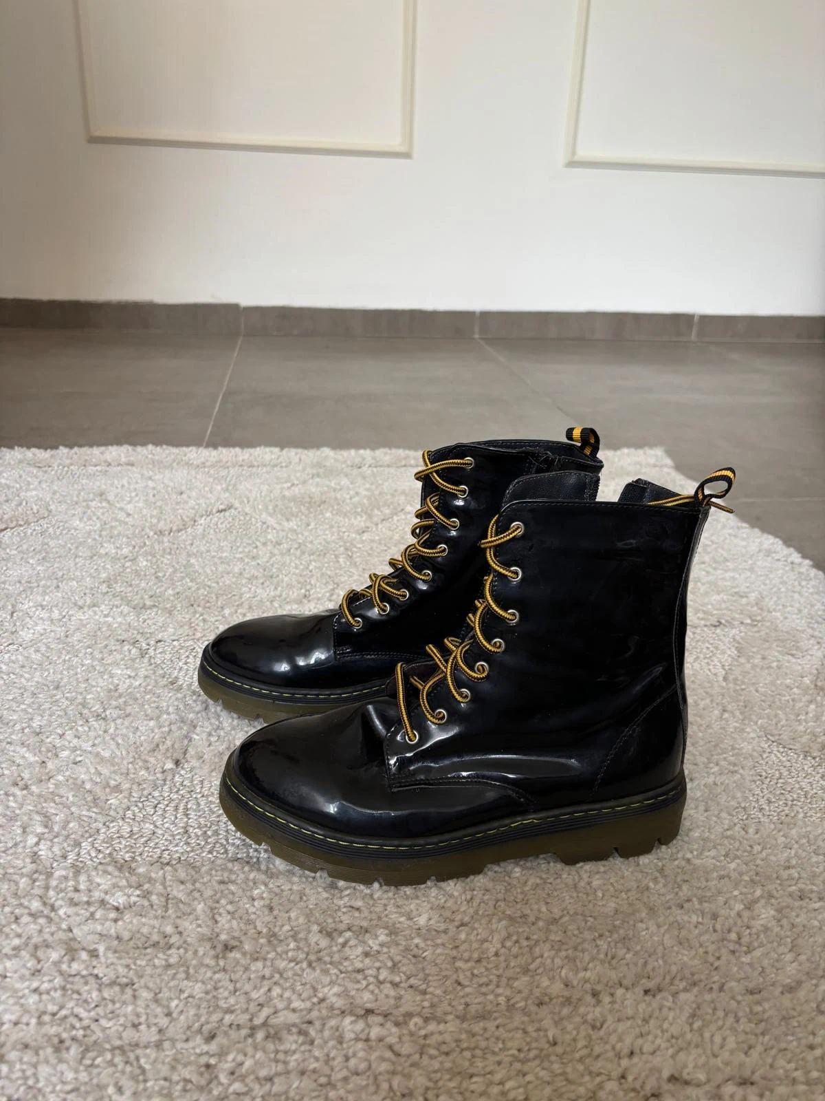 מגפיים עם שרוכים צהובים
