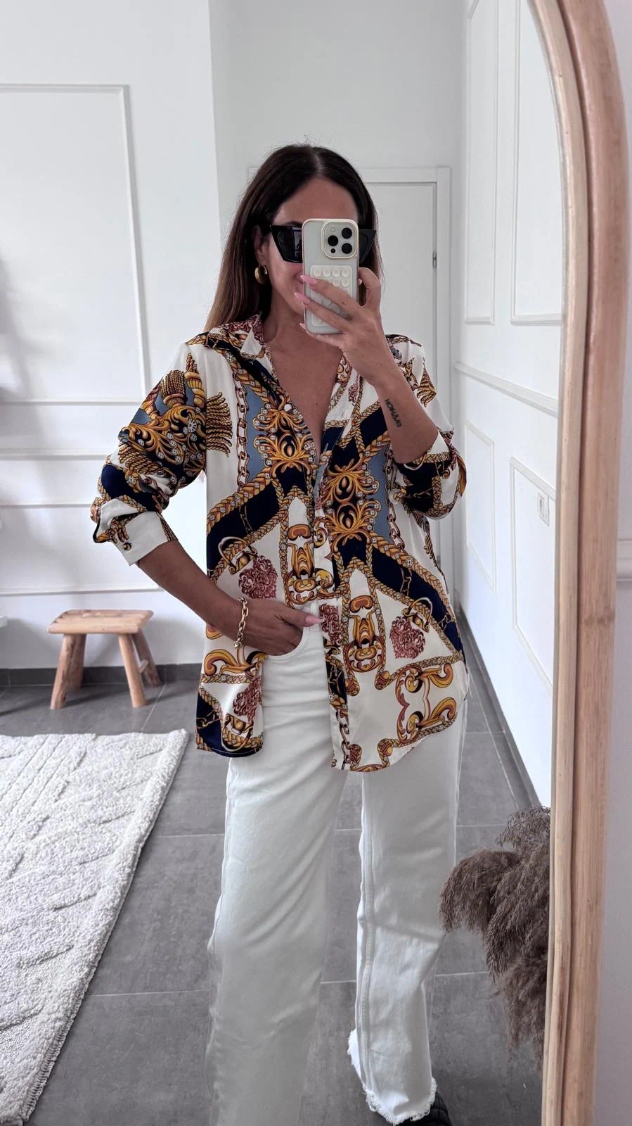 מכופתרת של קסטרו עם הדפס בגווני זהב