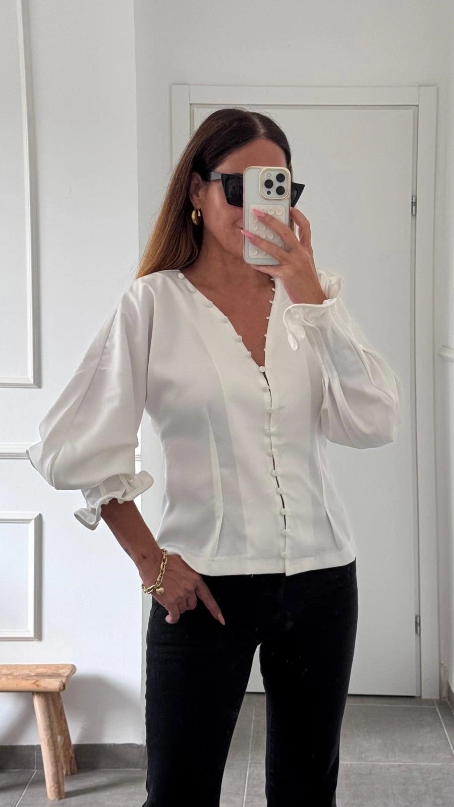 מכופתרת עם שרוולים נפוחים