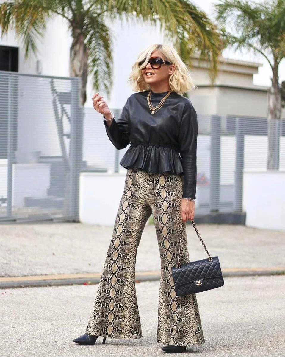 מכנסיים של זארה בגזרה מתרחבת בהדפס דמוי נחש