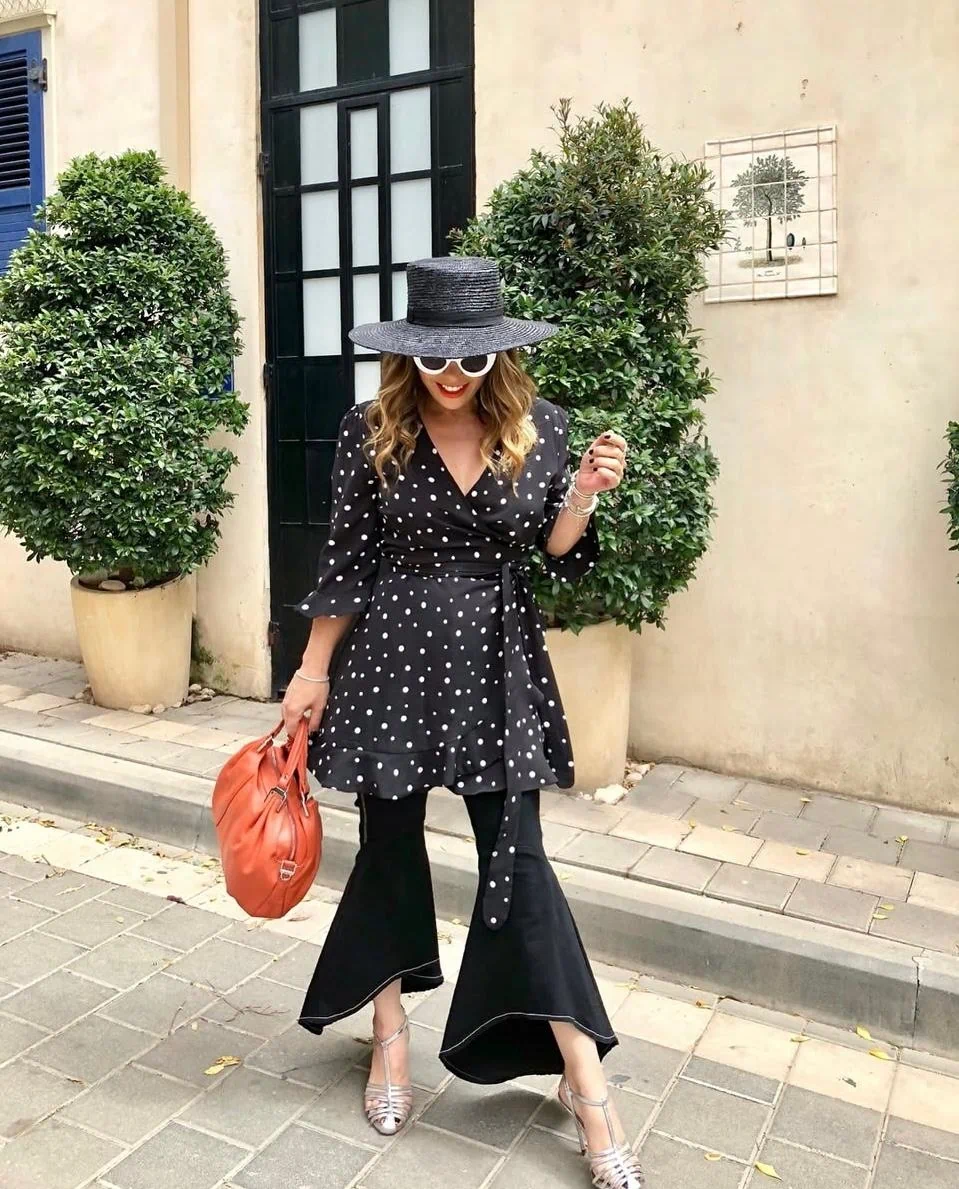 שמלה נקודות שחור לבן