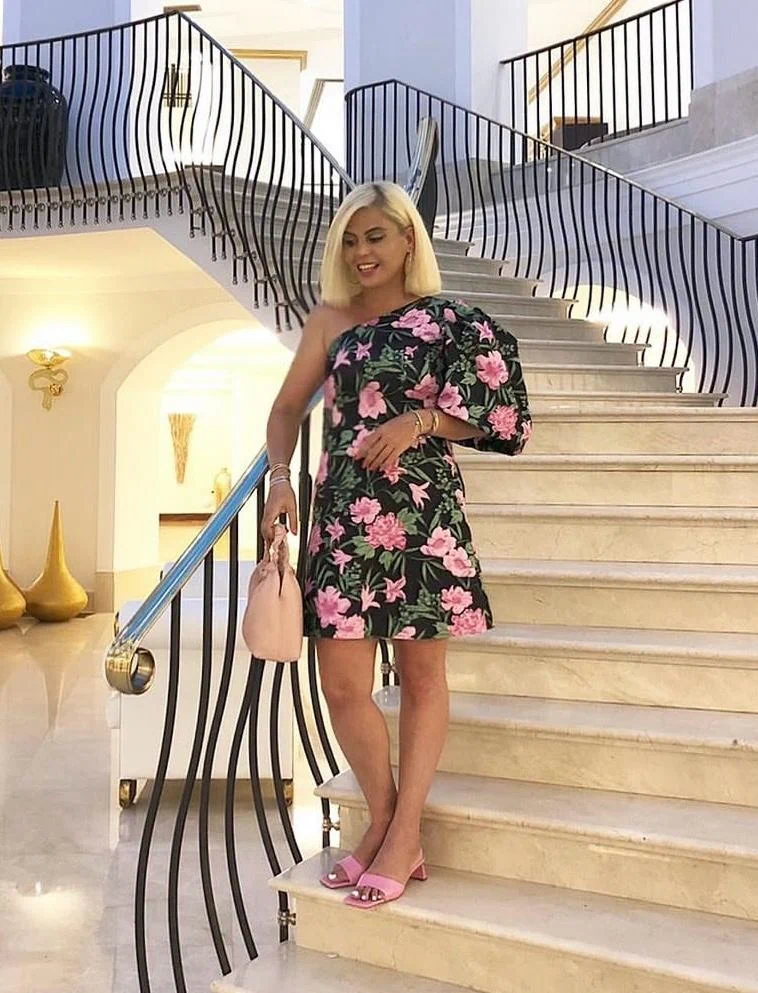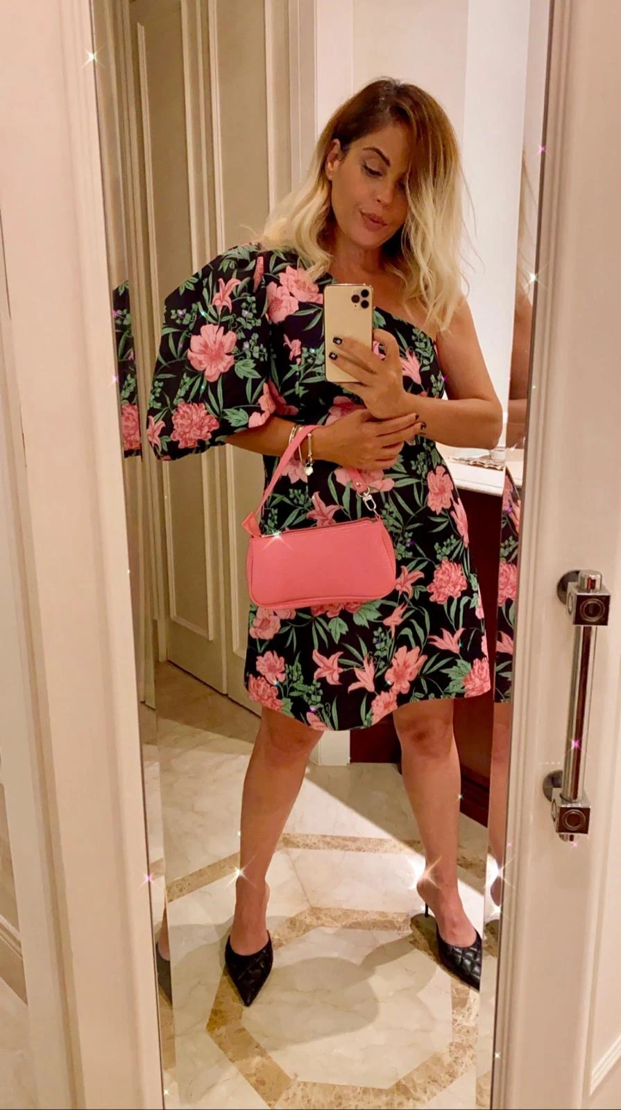 שמלה שחורה פרחים ורודים